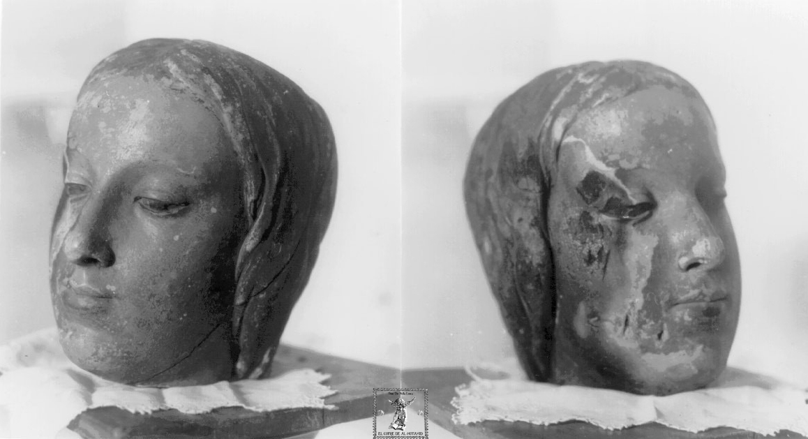 Por desgracia y como dijo Enrique Lafuente Ferrari, España es un país que ha destrozado muchísimo su patrimonio. La excepcional Virgen de Belén del antiguo convento de Santo Domingo fue salvajamente destruida en la mañana del 12 de mayo de 1931 por un grupo incontrolado de iconoclastas y anticlericales que incendiaron y destruyeron la iglesia y todo su patrimonio durante la Quema de Conventos sufrida por nuestra ciudad. De su altar, incluido el retablo dorado de salomónicas columnas que tras el hermoso medallón acristalado acogía tan encantadora escena escultórica, solo pudo encontrarse la cabeza chamuscada de la Virgen. Con su incomprensible e injustificable destrucción se perdió una de las joyas del arte de Pedro de Mena y una de las piezas escultóricas más valiosas de la ciudad.