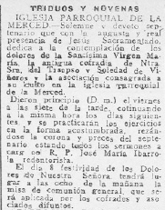 Nuestra Señora del Traspaso y Soledad de Viñeros. Iglesia parroquial de Nuestra Señora de la Merced. Destruida el 12-V-31. (Foto: colección particular. Coloreado del autor)